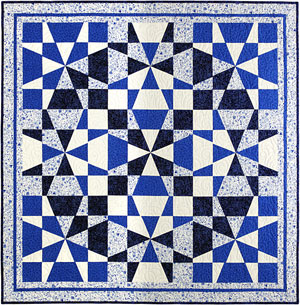Introducing the new Op-Art Kaleidoscope block. Make a minimum four large template-free Kaleidoscope blocks using only two fabrics and then slice and switch to create four 14” Op-art Kaleidoscope blocks. Add more fabrics and make nine blocks.