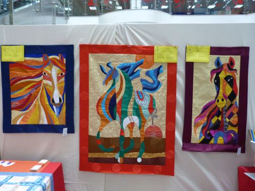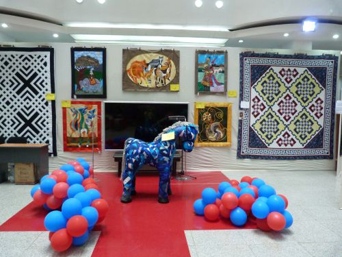 In August, I returned to Mongolia to assist with the Second International Mongolian Quilt Show. This year was the 10th Anniversary of the opening of the Mongolian Quilting Center and hosting a quilt show including quilts from Mongolia, USA, UK, Japan and Australia was a fitting way to celebrate. I was thrilled to see the progress that the Mongolian women have made in quilt making and product development and so proud of what they have done. I taught basic quilting skills ten years ago to these women who already had good sewing skills. Other teachers have also volunteered and now the women are making beautiful applique silk wall hangings of horses, Mongolian scenes and contemporary designs.