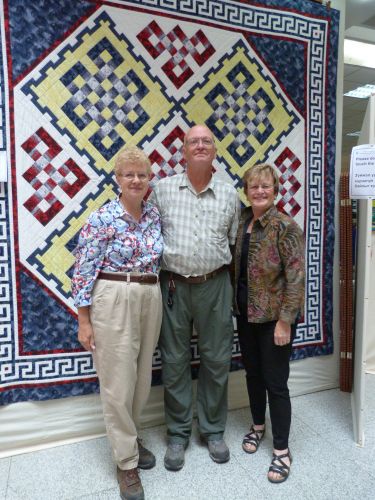 By the end of the six days of the show, everyone was very tired after the long days of hard work. We had to have workers there from opening at 9.00 a.m. to closing at 10.00 p.m. The quilt show took 15 hours to put up and only 2 hours to take down! The next day we had a barbeque at a ger camp just outside Ulaanbaatar and about 18 of the Mongolian women came. There was much merriment and laughter and they presented me with one of the lovely horse quilts. I hope that in the next ten years and beyond, the Center will continue to thrive and extend their influence to help even more Mongolian women.