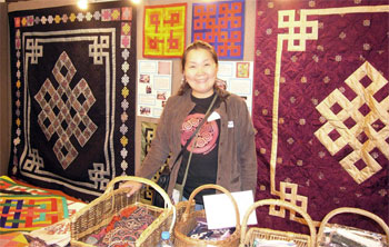 In March, Selenge came to visit me here in US and we began our fundraising campaign to raise $80,000 to purchase a permanent community center in Ulaanbaatar. We hosted a special exhibit of Mongolian quilts and sold patchwork items made by the Mongolian women at the Quilter's Anonymous show in Monroe, WA, and at a show in Milwaukie, near Portland, OR. Selenge had the opportunity to meet many quilters in this area and browse some of our quilt stores.