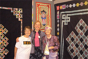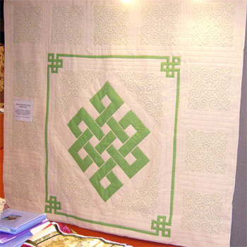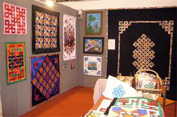 We met again in August in UK, Selenge's first visit to Europe. Together with UK quilters Lesley Coles and Jane Grendon, we hosted a Mongolia booth at the Festival of Quilts, a huge quilt show held in Birmingham with over 25,000 attendants. Connie Gilham, former International Representative of the UK Quilter's Guild, who initiated the Mongolia project there, joined us. The photo shows all five of us in the Mongolia booth. The Mongolian women are becoming more and more creative with their work, making pictorial appliqué quilts and beautiful silk pieces in complex patterns. The progress in their work, since beginning from scratch three years ago, is astounding and delighted us. Our booth attracted much interest and we raised over $7,000 from the sale of quilts and patchwork items. This was sufficient to pay for another year of rent at the Quilting Center, and to help with several months of operating and maintenance costs. We aimed to complete our capital campaign to purchase a building before September 2008, when this batch of rent will run out.